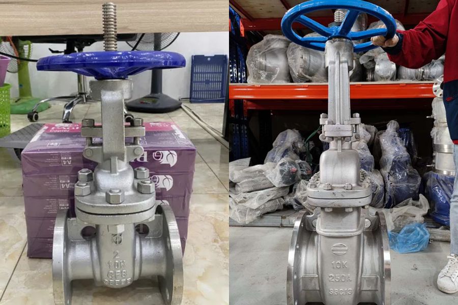 Trên thân của các dòng van chính hãng, các thông số quan trọng như nhãn hiệu, tiêu chuẩn áp suất PN, kích thước định danh DN và đặc biệt là mã lô sản xuất luôn được dập nổi một cách rõ ràng. Anh em hãy chú ý vào các nét chữ, chúng phải có độ cao đồng đều, không được nhòe hay mất nét do lỗi đúc thủ công. Thân van cổng Hàn Quốc thường được đúc bằng gang cầu GJS500-7, cho bề mặt mịn màng và không có các hốc bọt khí li ti. Việc kiểm tra các ký hiệu tiêu chuẩn như JIS 10K hay PN16 ngay trên thân van là bước lọc đầu tiên giúp anh em loại bỏ các dòng hàng trôi nổi không rõ nguồn gốc xuất xứ.